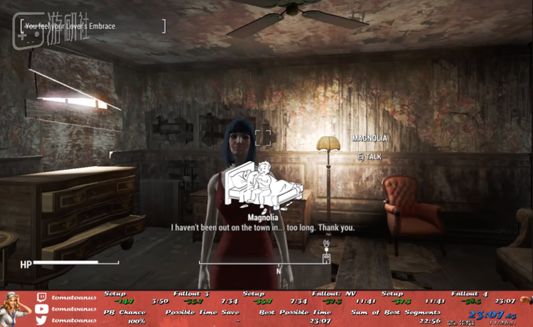他之前曾做过《辐射》系列的失贞速通,还实现在23分钟内在全部《辐射》正作系列作品中连续失贞的世界纪录。如果你想知道如何在游戏里快速体验到成人的滋味,tomatoanus是最好的老师。