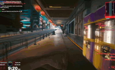 虽然玩家可以达到外面的世界,但在序章中,街上是不会出现车辆的,因此只能走路去找性偶。这里tomatoanus直接利用花手漂移前进,因为这样比冲刺的速度更快,而体力消耗更低。这样一路漂移到附近的性偶,完成速通,共用时10分钟27秒。