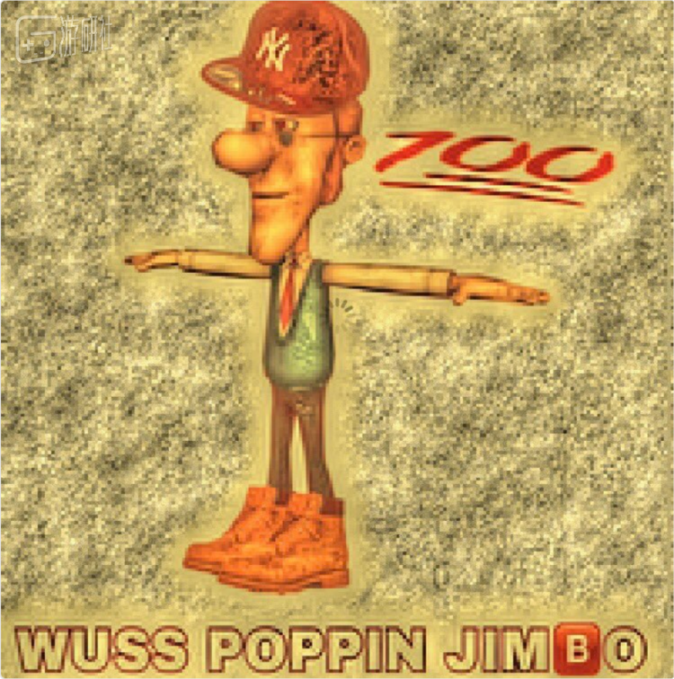 16年11月,一张图片突然成为一代新的梗图在网络上飞速传播,这张图片上是一个摆着T pose的小人和一句黑体加粗“Wuss Poppin Jimbo”。