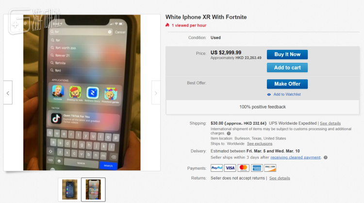 突如其来的风波让安装了《堡垒之夜》的苹果手机一时成为了香饽饽,在Ebay上高价出售