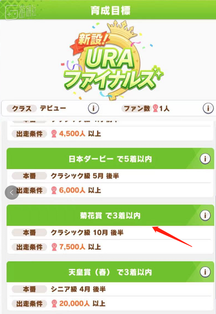 东海帝皇的主线培育剧情(可以理解为主线任务)要求训练师在大多数G1赛事中拿下成绩——那场本来没有出现在帝皇生涯纪录中的菊花赏同样包括在内。