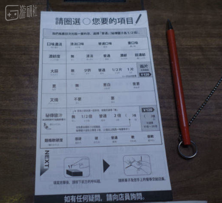 点餐也很日本。台湾小妹麻利地在泛旧的点餐机上戳戳,塞进纸币吐出一堆钢镚儿和一张小纸片,让我这个被扫码点餐宠坏的乡巴佬怪不好意思的。这里没有中国常见的多人餐桌,一家人随即被打散在昏暗狭小的屋子里,我眼里除了一张张弓着的后背就再也看不到别的东西。待我也弓着背的时候,才发现原来小纸片就是我和这拉面馆唯一的交流渠道。