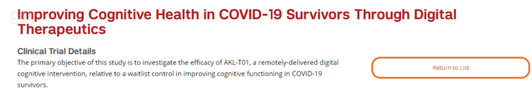 目前,邀请患有新冠且已出现认知障碍的病人来玩游戏的实验已经开始,就像EndeavorRx被列为处方药那样,有关游戏能否帮助新冠患者更全面地恢复健康,未来还需要更多的理论和数据来支持。