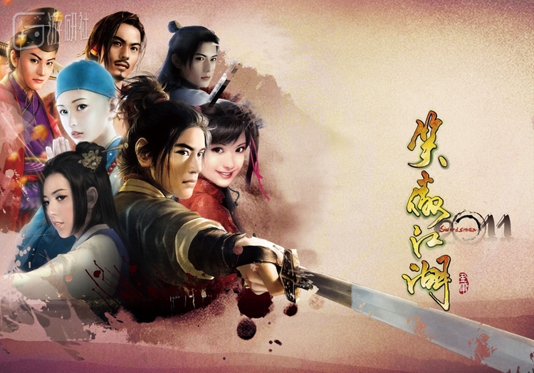 当年CJ上《流星OL》的试玩截图和《笑傲江湖》海报