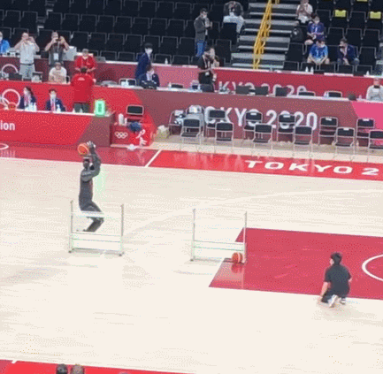 在美国对阵法国的篮球小组赛中,中场休息时就有一名篮球机器人站到了罚球线上。这台身着95号球衣的AI机器人CUE5,模拟着人体的投篮动作,在罚球线、三分线和半场处都能精确计算出动作幅度,准确完成投篮动作。