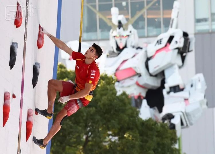 先是在铁人三项的比赛中,分走了参赛选手长达8秒的镜头,被网友吐槽为“真·‘铁人’三项”。而后又在攀岩比赛中,贡献了一张人机同框的“世界名画”。