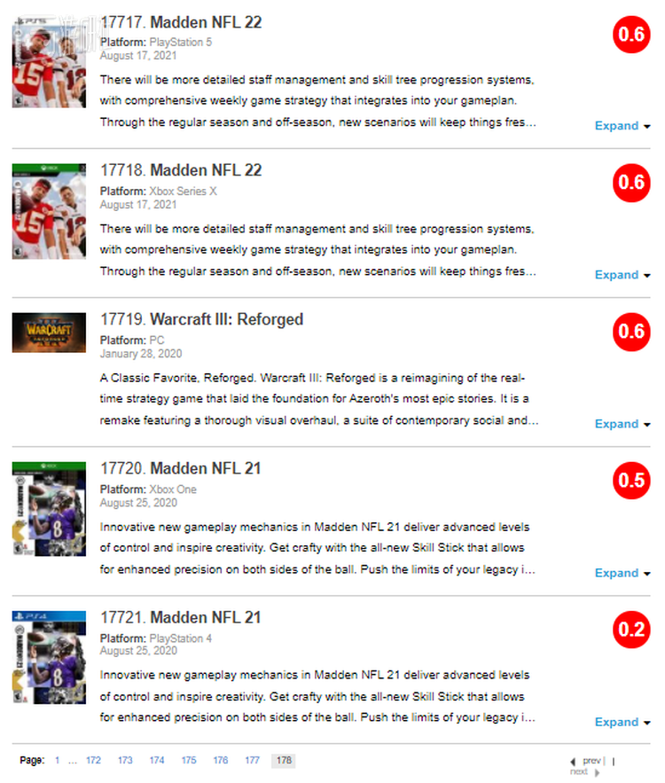 这样的“差评之战”其实在2020年就初现端倪,在《魔兽3重制版》之后,《全境封锁2》DLC和《麦登橄榄球21》也先后打破差评记录,致使MC针对游戏区推出“需游戏发售后36小时方可评分”的特殊条例。
