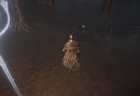 天气和昼夜系统自不必多说,官方已经介绍过它会影响到地图中怪物的种类和分布。我们在夜晚还遇到了一种“黄金雨”的特殊天气,这时候主角身上出现了一层与黑魂3“余烬”状态有些像的特效,不确定天气系统是否还涉及到增减益效果等对玩法的影响。