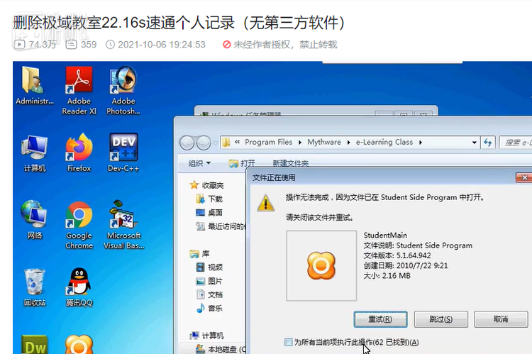 比如大家都熟悉的学校机房里的远程控制系统,想要摆脱老师的控制重获自由,只能删除万恶之源“极域学生教室”。于是,出现了就算是顶着学校机房那羸弱的电脑性能,也要强行打开录屏软件,以每秒5帧的超低帧数录制删除“极域学生教室”的速通选手。