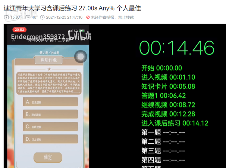 还有每位大学生永远都逃不过的青年大学习,如何做到又快又准地糊弄每一期课后练习,对于当代大学生来说也是个相当不错的速通题材。