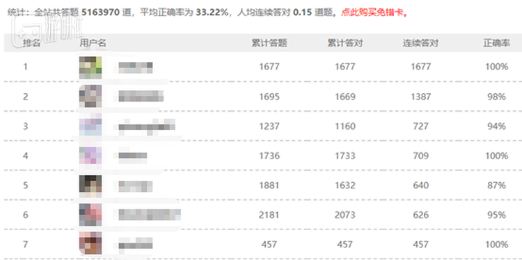 但纵使这些题目如何千奇百怪,打开排行榜,前排清一色的高正确率总能印证一条铁律:二次元人群对于答题有种异样的执着。