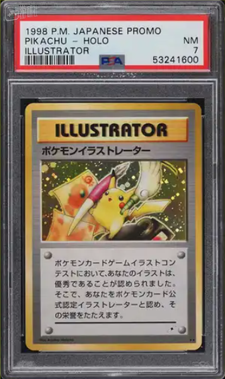 这张卡片之所以能卖出天价,是因为它的获取方式较为特殊,是1997年任天堂举办的插画大赛优秀奖奖品,一共只发行过39张,曾出现在市面上的仅有10张不到。由于存世量极少,一度是宝可梦卡牌收藏界价值最高的藏品。