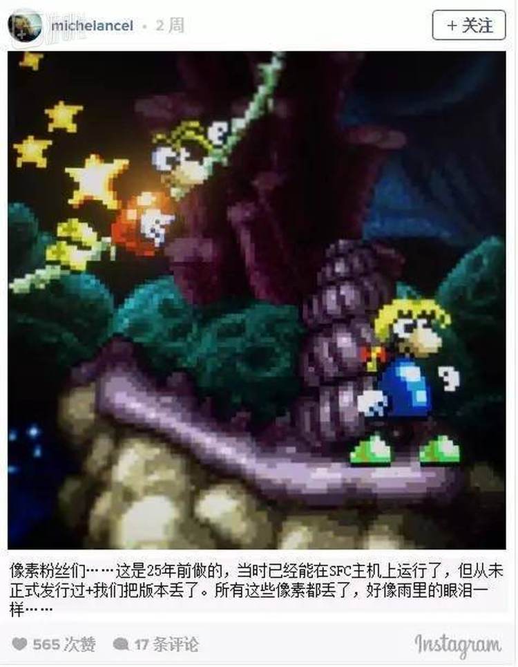 话说到这里本该就此结束,但就在不久前,“雷曼”之父Michael Ancel在社交平台Instagram贴出一张SFC版的开发版图片,为得是缅怀25年这款SFC版的“雷曼”,粉丝们也跟着唏嘘了一番。