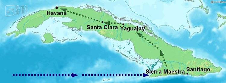 过关后出现了流程地图——古巴岛,我们的最终目的是攻下地图西北的哈瓦那。这进军路线和历史上的战争路线完全相同。