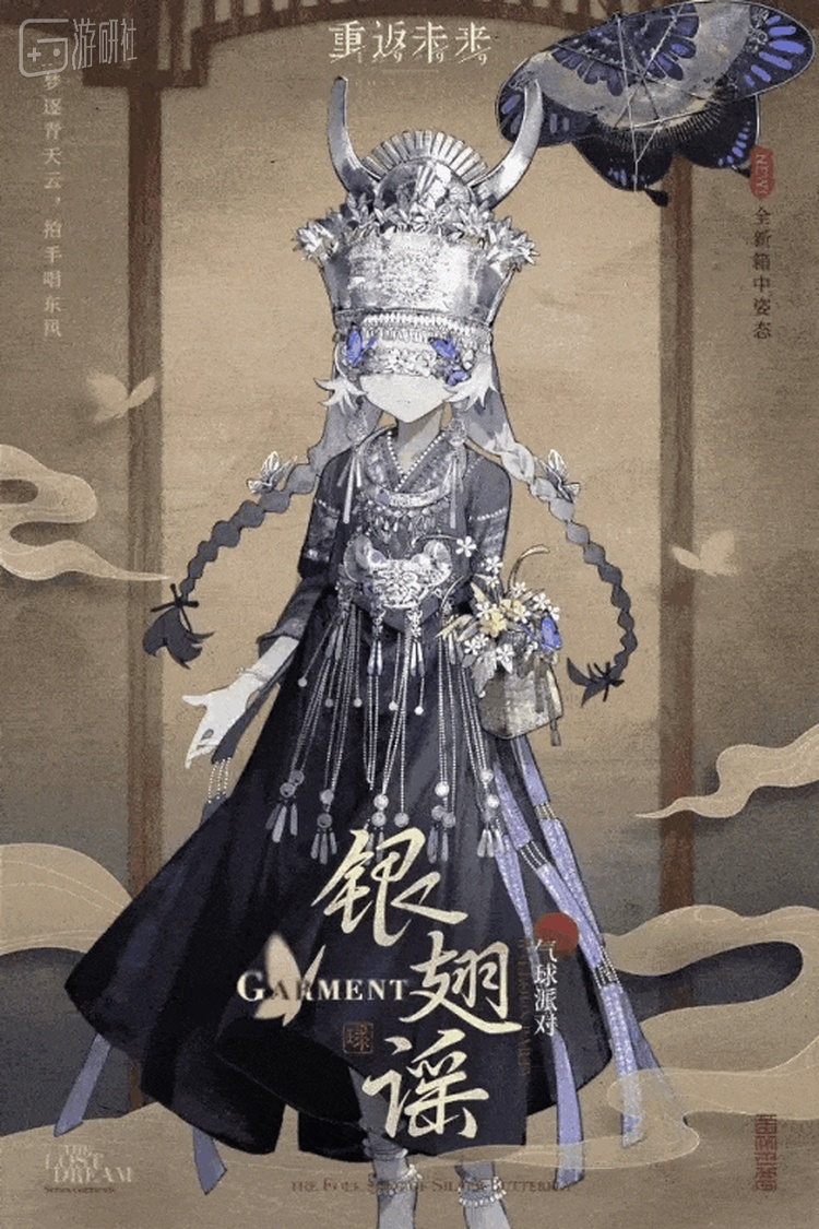 他们选择让角色气球派对只露半脸。在真实生活中,苗族银饰几乎没有“遮半面”的穿戴方法,但气球派对本身是一个身世异常悲惨怪诞的角色,言行甚至可以说是疯癫——在这样的人设下,覆面的沉重银饰反倒有了“苗疆少女”的神秘感,和角色故事相应匹配了起来。