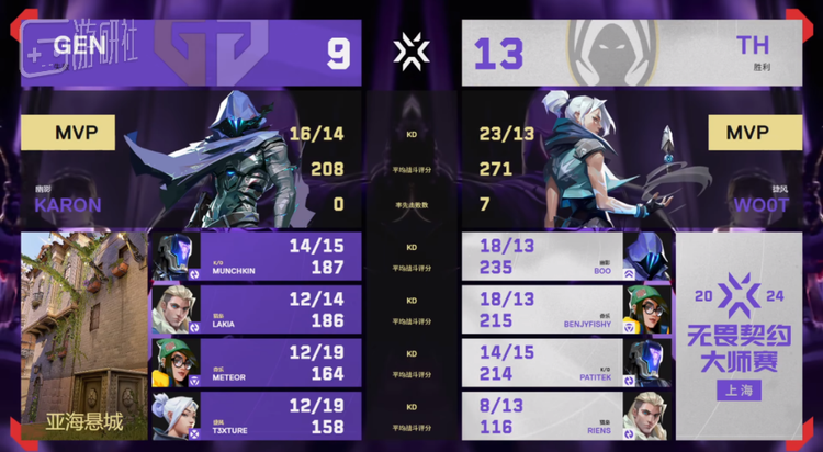 可即便面对势如破竹的Gen.G,TH仍然能够凭借过硬的枪法多次突破Gen.G的封锁线,咬下两个大分,甚至在Gen.G此前拥有81.8%胜率的地图亚海悬城取胜,令现场解说惊呼,“有时可不只是战术正确才能拿下比分”。