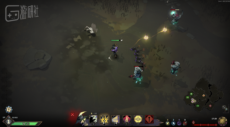 有别于《黑帝斯》一类游戏把地图切成小房间,《鸦卫奇旅》是在几张完整的大地图上探索,击败关底BOSS以推进关卡,目前总共有三张风格迥异的地图。玩家要四处打怪刷经验升级,提升属性的同时不断学会新的天赋,ARPG的味道非常浓厚,有些像一个迷你版的《暗黑破坏神》。