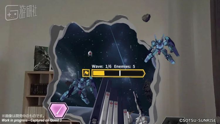 观看者可以在一些VR互动环节体验到很多高达系列中的经典场景,如使用钩锁在无重力场景中移动、或是直接上手驾驶高达击坠敌机,通过VR这个独特的载体提供了难以比拟的临场感。抓起虚拟高达模型、像个大孩子一样“咻咻咻”的“MR对战”小游戏也有着独到的乐趣。