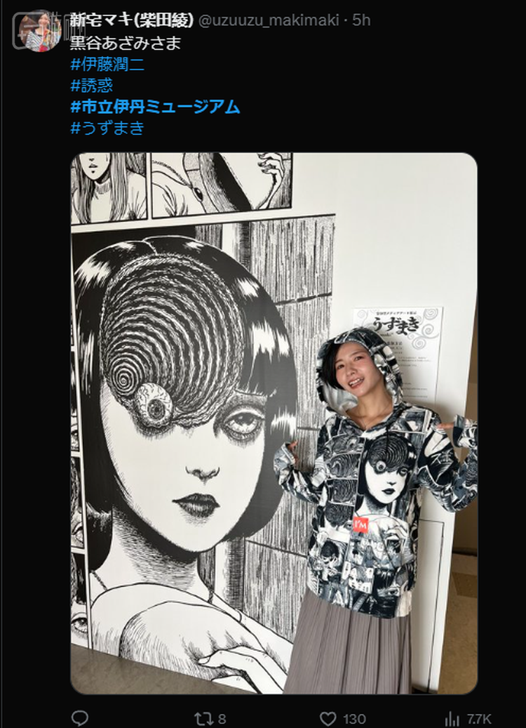 2024年10月11日,伊藤润二作品展览在日本兵库市立伊丹美术馆开幕。《漩涡》相关展品作为伊藤润二最脍炙人口的经典之一,依然是场馆内最吸引目光的存在。