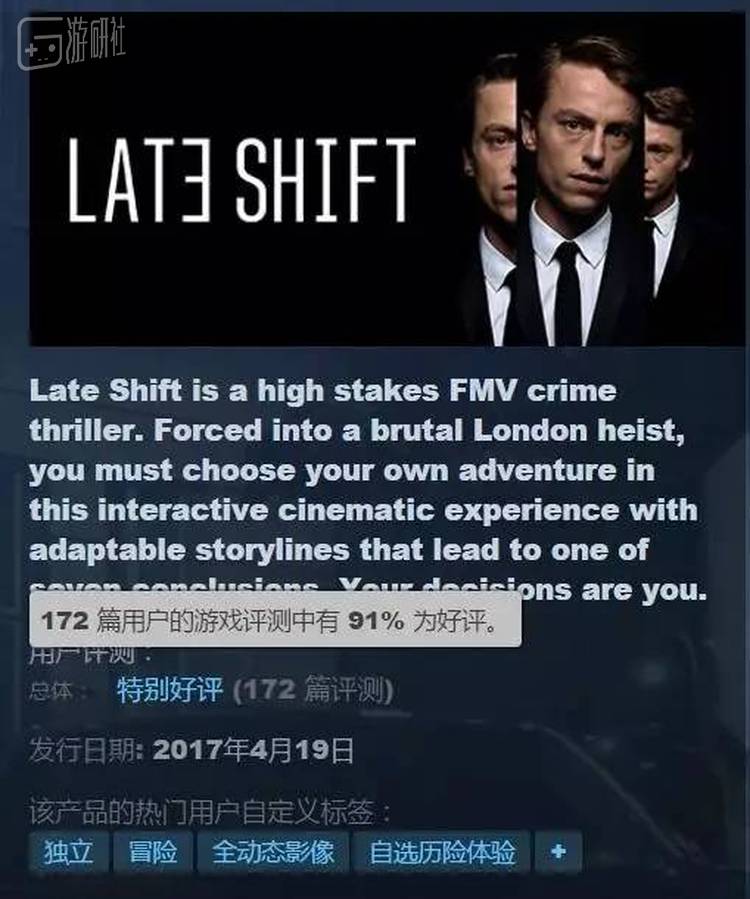 但任何元素只要发挥到极限,必会不同凡响——最近登陆Steam的一款游戏《Late Shift》便是如此,它把FMV运用到了极致——整个游戏流程都是专业演员真人拍摄的,而且运镜考究、场景火爆,仿佛在看一部精彩的美剧。