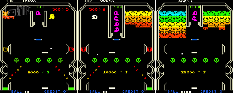 岩谷彻(下文简称“岩谷”):应该是第4作吧。前面有三款失败的游戏《GeeBee》《BombBee》和《CutieQ》。当时大家都想在游戏里展示出自己的开发水平,结果把游戏难度搞得太高了。后来开发《吃豆人》时,大家都时刻注意不要把游戏做的太难。