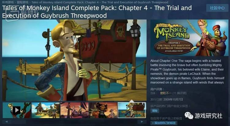 这款游戏就是2009年发布的冒险游戏《<Tales of Monkey Island> Complete Pack: Chapter 4 - The Trial and Execution of Guybrush Threepwood》(《〈猴岛传奇〉完全版第4章:盖博·拉许的审判和裁决》),标题一共包含14个单词,一口气念下来的话,对肺活量还真有些要求。