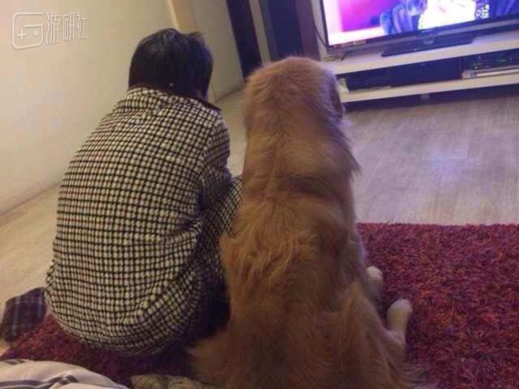 高大勇和爱犬“宝宝”正在一起看电视