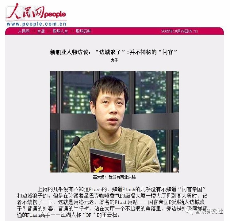 2002年,一篇来自人民网的高大勇访谈