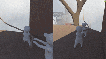 首先是画面和完成度上的粗糙,《人类一败涂地》采用了一种极简画风,完全没有UI,所有物体都是一个纯色的色块。