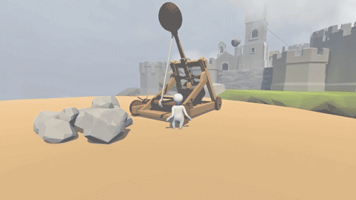 《人类一败涂地》拥有很高的自由度,你几乎可以和一切物体互动,尝试各种千奇百怪的方式过关。你能推动火车,撞碎墙壁,甚至用投石机把自己射出去。
