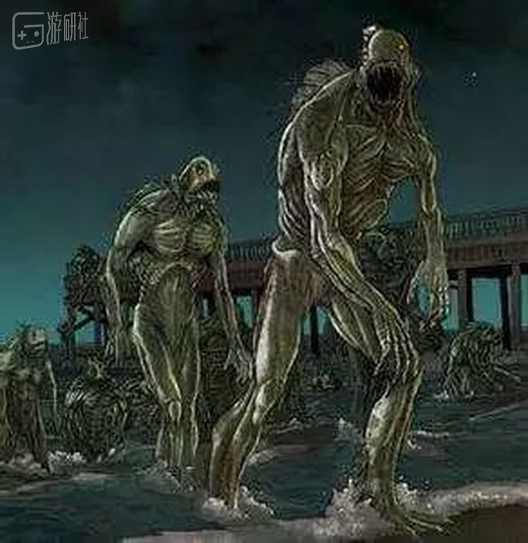 影片中人鱼的形象实在是和童话故事里的美人鱼沾不上边,反倒是十分接近克苏鲁神话里的深潜者。他们有着共同的特点:鱼头人身,身上长鳞,颈部有鳃,都有疑似不老不死的能力。