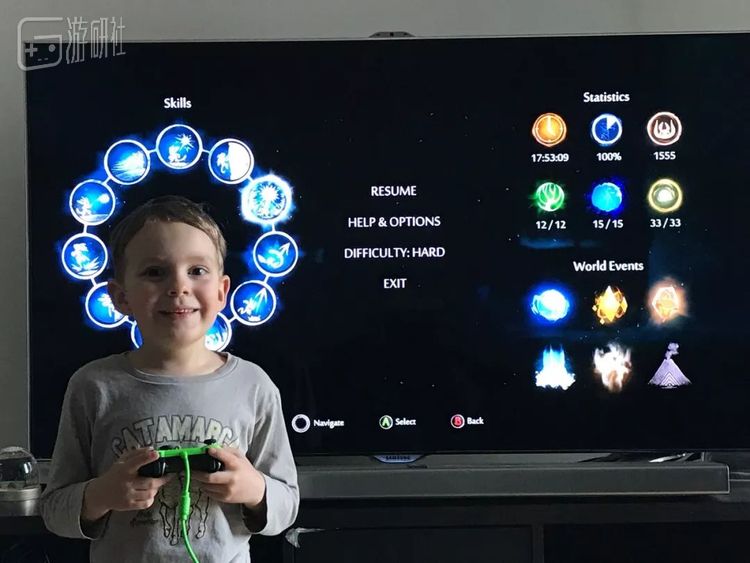 36岁的BuBubbi贴出了一张照片,他6岁的儿子在Xbox One上获得了《奥日与黑暗森林:决定版》的100%完成度。