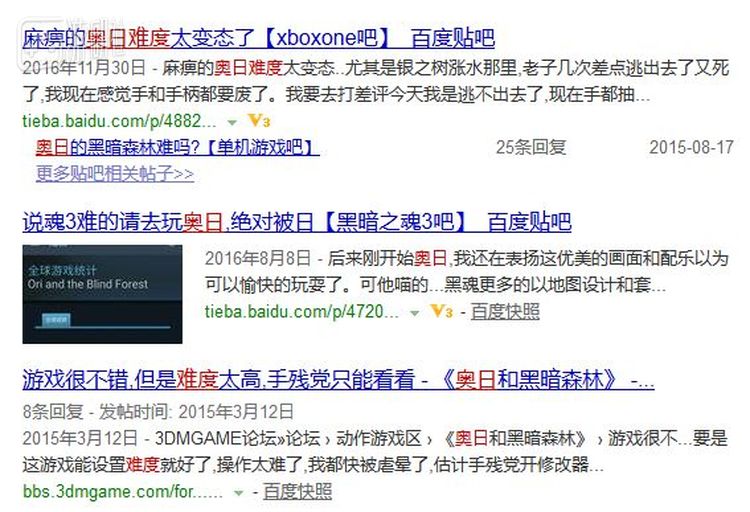 搜索引擎上,与“奥日”一同出现的经常是难度的讨论