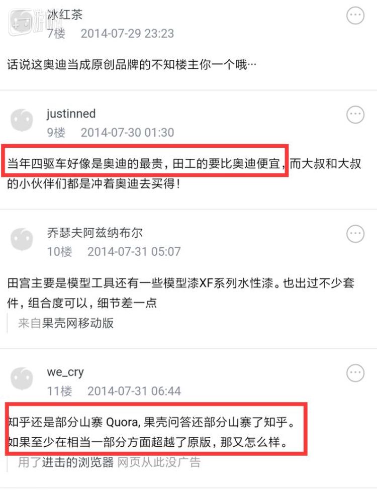 就算到了今天这个互联网发达的年代,持有我当时那种观点的人并不在少数,翻看前几年关于田宫双钻的讨论帖时还是能看到这样的言论: