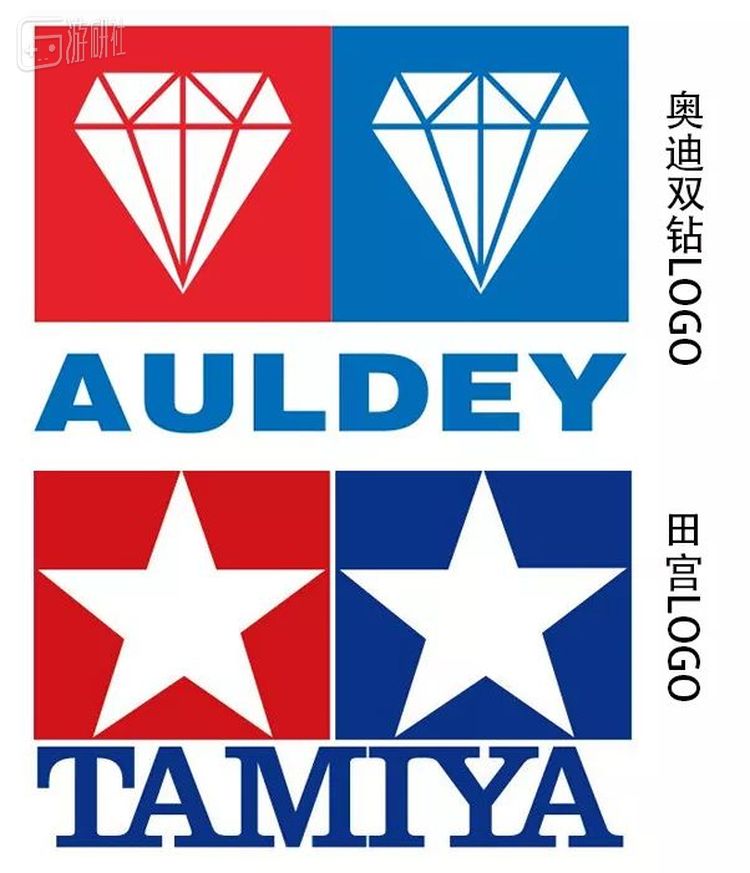 蔡老板取这个名的时候,有没有借鉴四个圈的Audi咱不好说,但是Logo应该向迷你四驱车真正的开发商日本田宫(TAMIYA)做了一些参考。