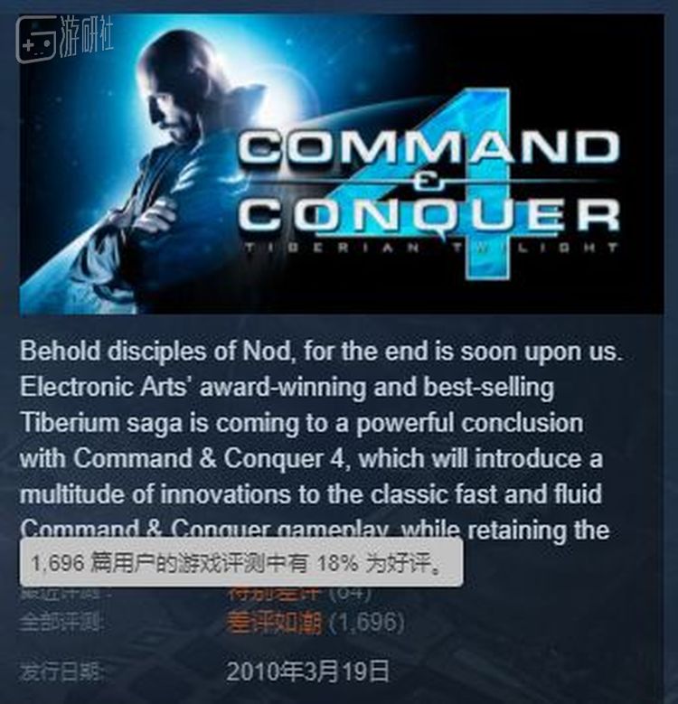 能把这样一个万众期待的经典系列的续作做得谁都不待见是一件挺难得的事,也许它的名字不叫“命令与征服”,兴许玩家们会宽容许多,但作为一个经典系列的收官之作,如此收场,令人惋惜。