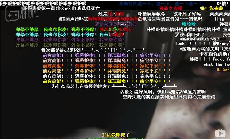 第一P末尾,女鬼LISA向毫无防备的C君袭来,C君反应挺快,在一秒钟之内光速退出了游戏。随后的视频界面上布满了“护眼弹幕”,而C的惨叫连绵不绝。