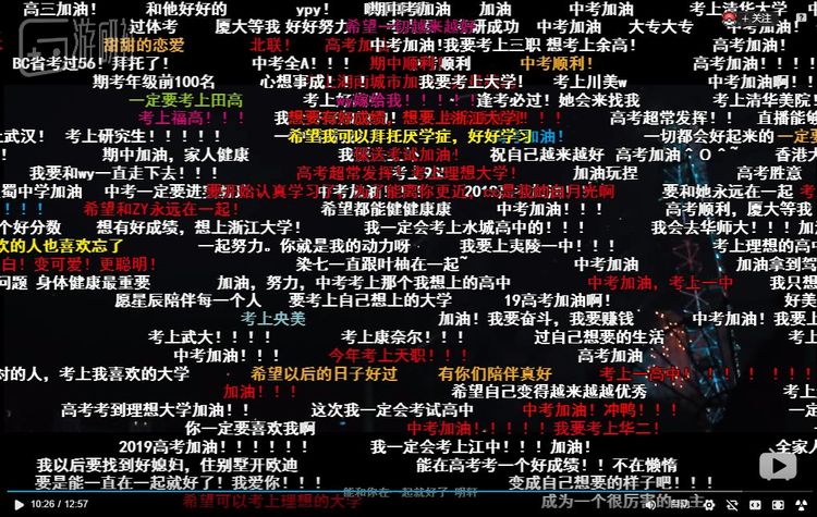 视频中伦敦跨年的一刻,C君记录下了夜空中烟花盛开的场景——尽管视频上传的时候,时间已经不是新年,也没有什么特殊的纪念意义,但是面对C君带来的烟花,观众们还是用许愿刷满了屏幕,他们没有打出宏大遥远的梦想,而是更为简单,朴实的,对生活的希望,比如“希望成功专升本”,“中考加油”,或者是“希望考上理想的大学”。