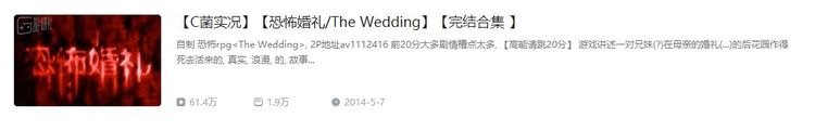 于是在2014年的5月7日,B站游戏区新增了一期视频“【C菌实况】【恐怖婚礼/The Wedding】”,上传用户是“渗透之C君”。