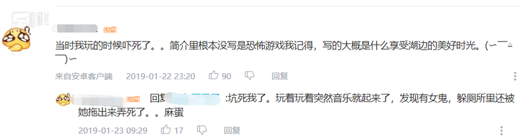 没过多久,与床上金发女子一模一样的女鬼突然从湖中爬出,朝着主角而来。此时恐怖的背景音乐响起,随着女鬼逐渐靠近的步伐,玩家才能惊慌失措地发现自己点进了一个恐怖游戏。